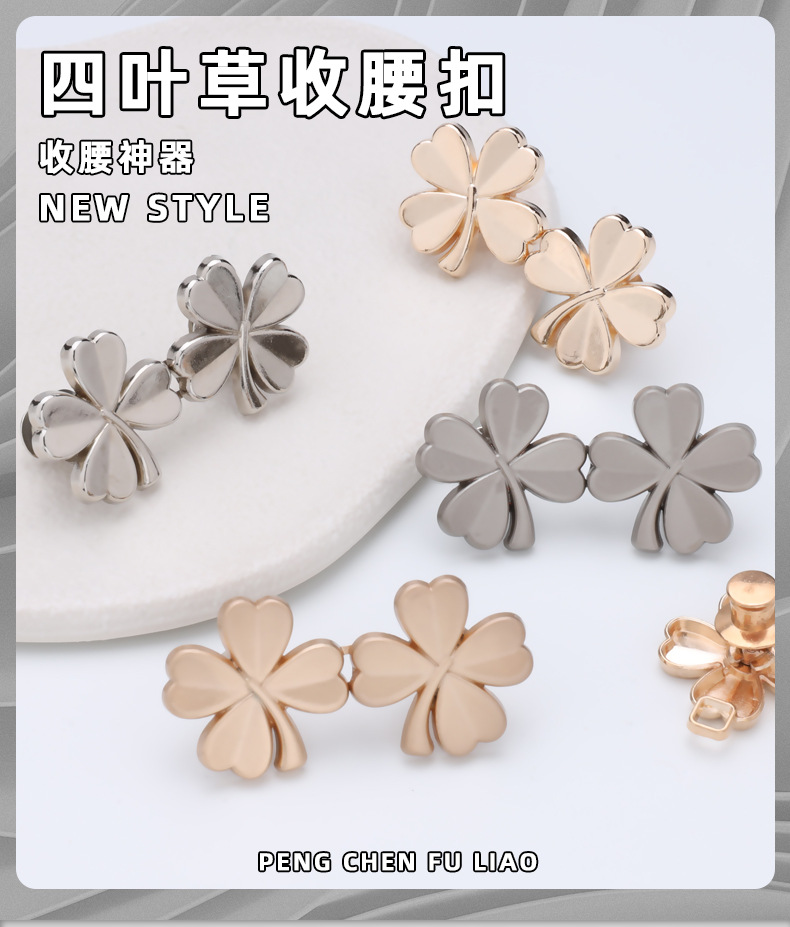 2分鐘前四叶草金属收腰扣 可拆卸免缝免钉收腰鈕扣 小對扣 牛仔裤收腰扣腰的神器 腰圍調節扣 固定扣 - 團購價10入組1199