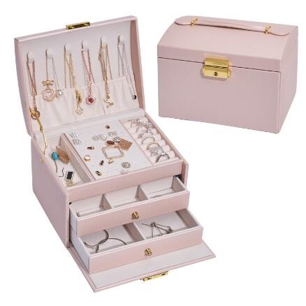 半小時前帶鎖三層抽屜首飾盒 。大容量,巨能裝,滿足女孩子收集癖,各種首飾裝裡面,防灰防塵防氧化,不易丟,超好用 - NT$1699三入組