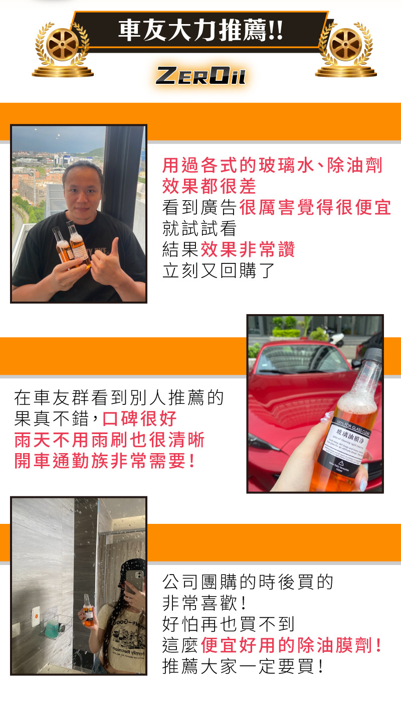 2分鐘前ZEROil零油膜玻璃淨視線不清晰行車不安全一罐輕鬆去油膜 - 【團購組】買6送6 / 贈清潔用品*3