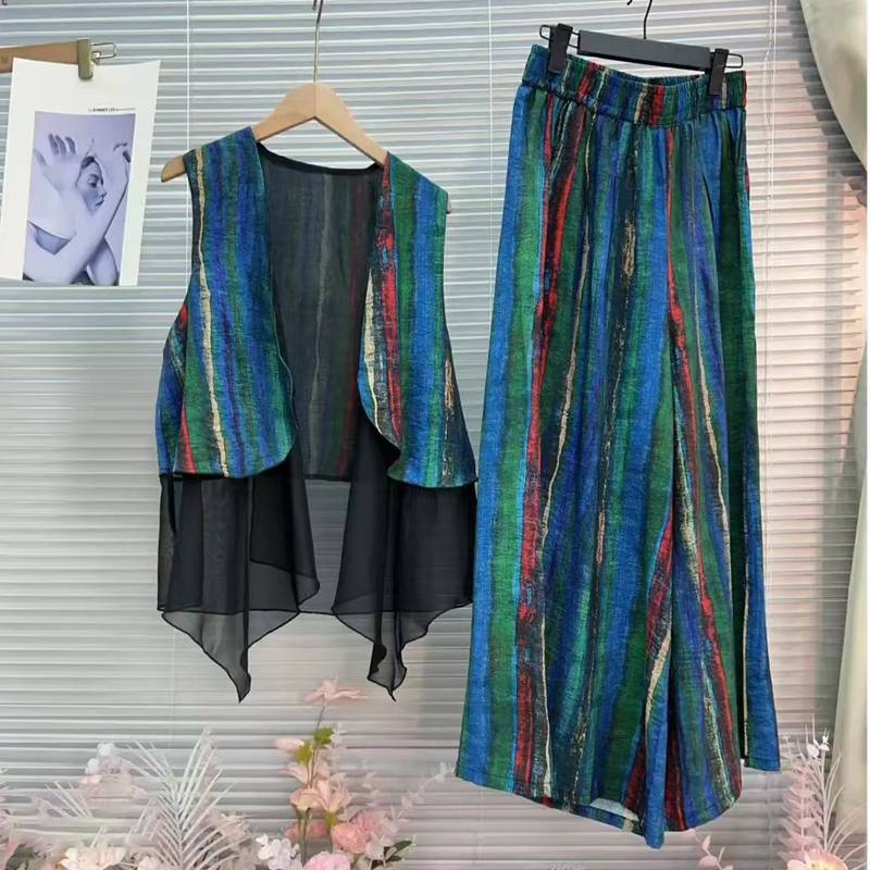 20分鐘前居然這麼顯瘦!色彩感十足的氣質馬甲套裝也太美了吧,假兩件馬甲搭配條紋寬褲,妥妥的慵懶感~ - 【限時下殺】馬甲+褲子一套 僅需 NT$998